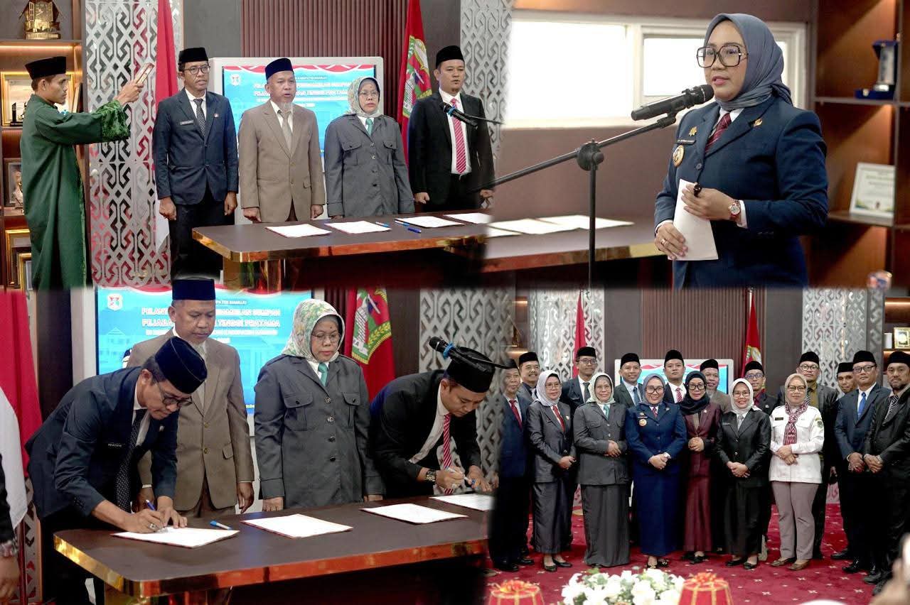 Bertempat di ruang kerja bupati acara pelantikan dan pengambilan sumpah dilaksanakan dengan nuansa sederhana.